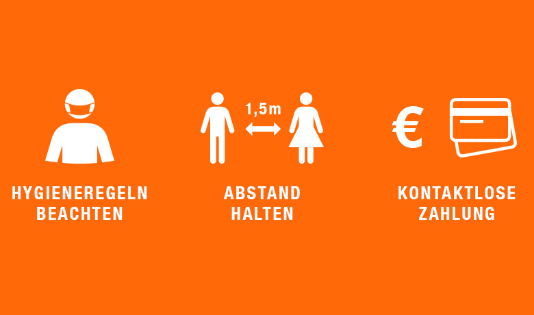 ABSTAND: Haltet zu anderen KundInnen und zu MitarbeiterInnen einen Mindestabstand von 1,5 Metern.